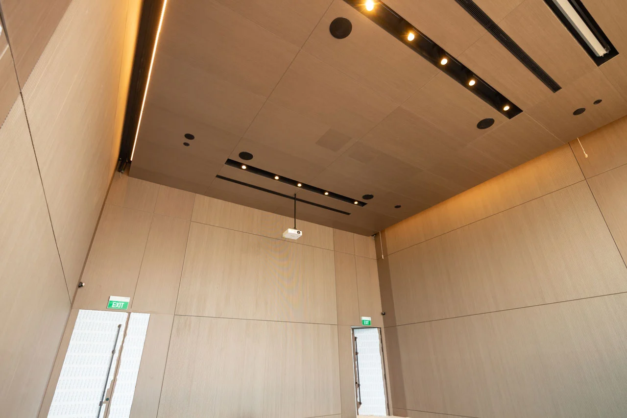 At AMO Residences, a premier residential project, the showflat needed to reflect the serene and luxurious living experience that potential homeowners would expect. Aural-Aid took on the challenge of optimizing the acoustics of the showflat, ensuring it provided a tranquil environment free from external noise distractions. The use of sustainable and functional acoustic materials, such as Fabrix™‘s fabric acoustic panels, was key to achieving the desired balance of sound clarity and comfort¹.